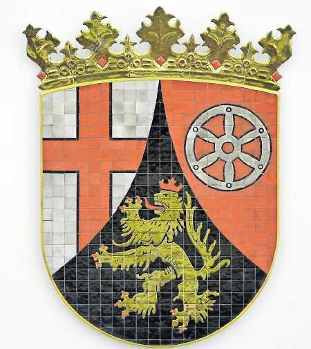 Das Wappen von Rheinland-Pfalz bewahrt die Erinnerung an die reiche Geschichte der einzelnen Landesteile: das Trierer Kreuz, das Mainzer Rad und der Pfälzer Löwe. FOTO: FREDRIK VON ERICHSEN/DPA