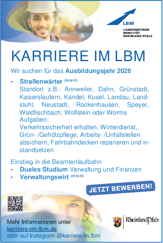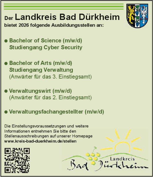 Theorie und Praxis? Beides! Deine Ausbildung findet im Wechsel zwischen Berufsschule und Sparkasse statt - ideal, um das Gelernte direkt anzuwenden. Für die Bewerber wartet spannende, abwechslungsreiche Ausbildung mit digitalen Lernmedien inklusive gratis iPad zum Start. Projekte rund um Digitalisierung, Nachhaltigkeit und Persönlichkeitsentwicklung. Weiterbildungen und Team-Events. Top Betreuung und echtes Teamgefühl. Gute Chancen auf Übernahme. Moderne Arbeitsplätze und flexible Arbeitszeiten sowie Jobticket, Dienstrad und betriebliche Altersvorsorge. Das Ausbildungsangebote der Sparkasse umfasst Bankkaufmann (m/w/d), Kaufmann für Dialogmarketing (m/w/d) und Duales Studium - BWL-Finanzdienstleistung (m/w/d). Von den Bewerbern wünscht sich die Sparkasse, dass sie offen und motiviert sind und gerne eigene Ideen miteinbringen. Zudem Teamgeist, Verantwortungsbewusstsein und eine freundliche Art. Auch sollten die Bewerber Lust auf den Umgang mit Menschen und digitalen Medien haben. Mittlere Reife, Fachhochschulreife oder Abitur sind als Schulabschluss erforderlich. Klingt gut? Dann bewirb dich jetzt!. Informationen und die Bewerbung gibt es unter sparkasse-rheinhaardt.de/karriere. red