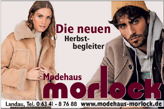 Wenn es um trendbewusste Mode geht, ist das Modehaus Morlock am Obertorplatz in Landau (Reiterstraße 6) das führende Fachgeschäft für Damen und Herren. Es führt coole Marken-Kollektionen, die Kunden und Kundinnen stets begeistern. Namhafte Marken wie Mark Aurel, Monari, Lieblingsstück, Smith & Soul, Opus, Oui, Blue Fire und viele andere bestimmen jede Modesaison aufs Neue mit ihren tragbaren und stilvollen Damenkollektionen. Bei den Herren sind gefragte Labels PME Legend, Daniel Hechter, Digel, Fynch Hatton und Milestone. Neu ins Programm genommen hat das Modehaus Morlock die Jackenkollektion der innovativen Trendmarke Como.