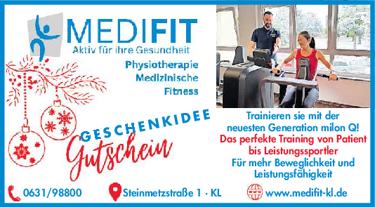 Die osteopathische Behandlung versteht sich als gemeinsamer Prozess von Therapeut und Patient, der Patient muss sich und seinen Körper dabei aktiv einbringen. Der erste Termin dauert in der Regel etwa 90 Minuten und umfasst eine ausführliche Anamnese, eine gründliche Befundaufnahme sowie eine erste Behandlung. Darauf aufbauend wird ein individueller Behandlungsplan erstellt. Weitere Termine erfolgen je nach Beschwerdebild in Abständen von zwei bis sechs Wochen. „Wichtig ist, dass der Patient die Behandlung aktiv mitträgt und dem Körper die nötige Zeit gibt, auf die Impulse zu reagieren“, betont Westerhorstmann. Seit vielen Jahren ist Medifit eine feste Adresse für individuelle und ganzheitliche Therapieangebote in Kaiserslautern. Das angeschlossene medizinische Fitnessstudio ergänzt die therapeutische Arbeit sinnvoll. Das Studio liegt zentral am Stadtpark in der Steinmetzstraße 1, Parkplätze sind ausreichend vorhanden, auch die Anbindung an den öffentlichen Nahverkehr ist hervorragend.