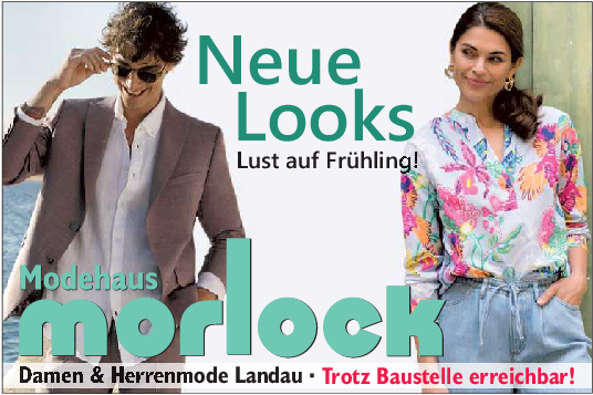 Auch die Herrenmode überzeugt mit starken Marken und zeitlosem Stil. Labels wie PME Legend, Daniel Hechter, OLYMP, Fynch-Hatton u. v. a. stehen für Qualität, Komfort und modische Souveränität – vom sportlichen Look bis zum gepflegten Auftritt für besondere Momente. Am verkaufsoffenen Sonntag, 29. März, verwöhnt das Mode Morlock Team mit einem Glas Secco oder Kaffee/Espresso und kleinen Knabbereien. Außerdem gibt es auf ein ausgewähltes Lieblingsteil 10 Prozent Preisnachlass. Mit einer gelungenen Mischung aus Modekompetenz, Servicequalität und familiärer Atmosphäre ist das Modehaus eine feste Adresse für alle, die Wert auf Stil, Beratung und ein angenehmes Einkaufserlebnis legen. end