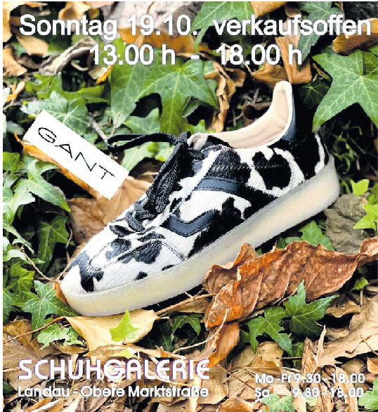 Schuhgalerie, Westbahnstraße 28, 76829 Landau, Tel.: 06341 919-115, www.schuhgalerie-landau.de
