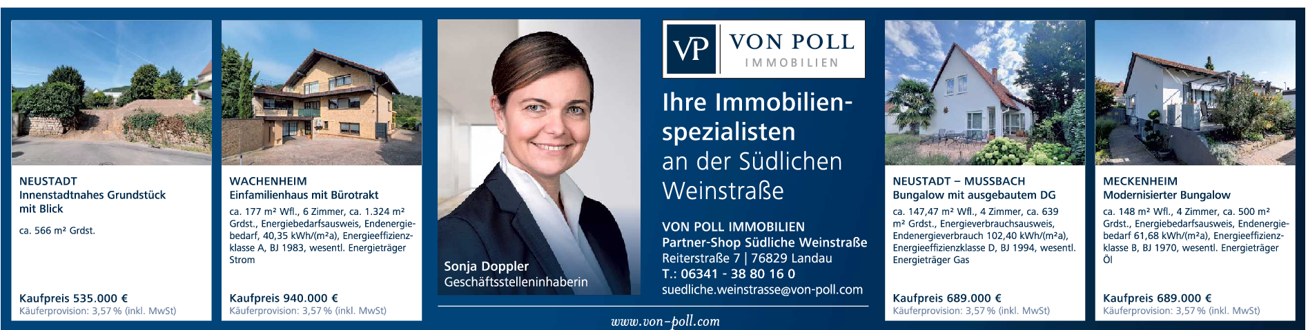 Außerdem machen steigende Baukosten vor allem im Neubausegment den Erwerb von Bestandsimmobilien deutlich attraktiver. Sowohl bei Käufern als auch bei Verkäufern wächst das Bewusstsein, dass langes Zögern auch mit Risiken verbunden sein kann. Dabei ergeben sich gerade jetzt gute Chancen, von denen beide Parteien maßgeblich profitieren - allerdings erfordert die aktuelle Marktlage auch entschlossene Entscheidungen und professionelle Expertise. Sie erreichen die VON POLL IMMOBILIEN EXperten unter Telefon 06341/38 8016-0 beziehungsweise www.von-poll.com/suedliche.weinstrasse oder Sie besuchen direkt den Shop in der Reiterstraße 7 in Landau. red