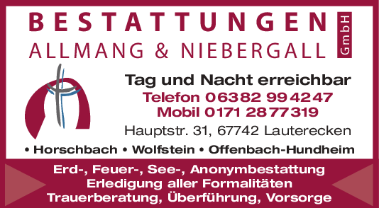 Walter Cappel in Altenglan ist ein Bestatter, der mit dem neuen Bestattungsrecht gut vertraut und auf dem neusten Stand der Rechtsprechung ist. Darüber hinaus hat er bereits erste Erfahrungen mit den neusten Bestattungsformen gesammelt. Er ist zudem ein exzellenter Berater, wenn es um Bestattungsvollmachten geht.