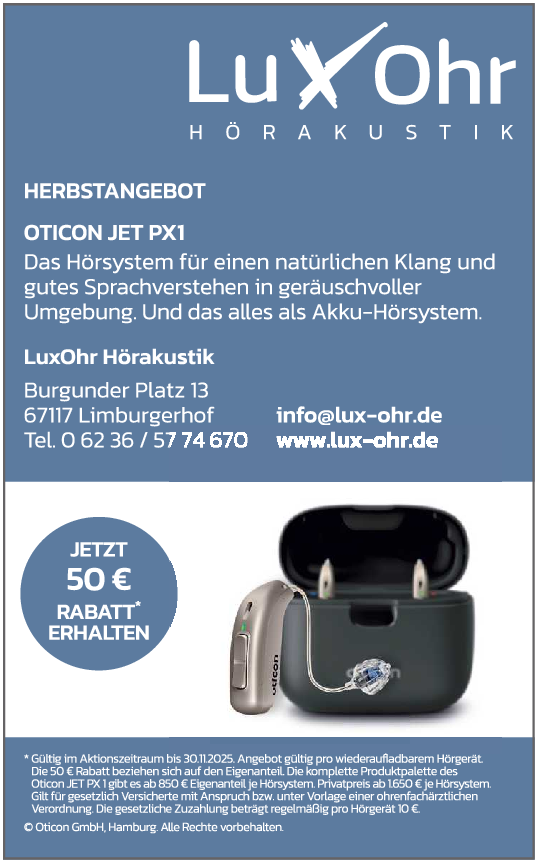 Besonders hervorzuheben ist die Zufriedenheitsgarantie: Auch nach dem Erwerb eines Hörsystems bleibt LuxOhr Hörakustik bis zu sechs Monate in der Verantwortung. Sollte sich herausstellen, dass die gewählte Lösung nicht den Erwartungen entspricht, wird gemeinsam nach einer besseren Alternative gesucht - offen, transparent und ohne zusätzliche Belastung für die Kundin oder den Kunden.
