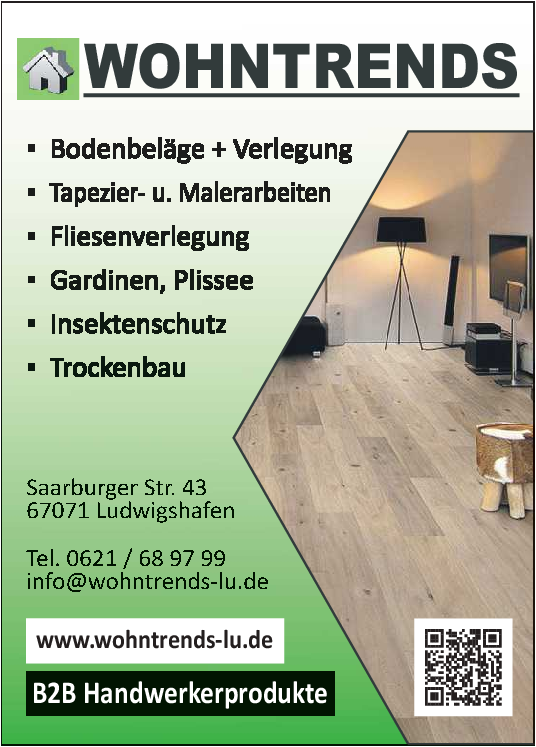 Die T+T Wohntrends GmbH in Ludwigshafen setzt auf genau dieses Prinzip. Das Unternehmen begleitet Privat- wie Objektkunden von der Beratung über Auswahl und Aufmaß bis zur fachgerechten Umsetzung. Im Mittelpunkt steht dabei nicht nur das einzelne Produkt, sondern der Raum als Ganzes. Ob Bodenbeläge, Maler- und Tapezierarbeiten, Wandgestaltung oder Fensterdekoration: Ziel ist eine Lösung, bei der Materialien, Funktionen und Gestaltung zusammenpassen.