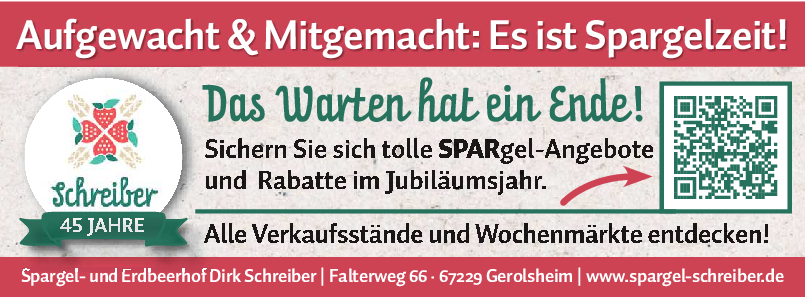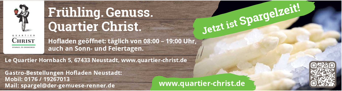 „Pfalzmarkt eG vertreibt Obst und Gemüse ausschließlich an Großkunden und den bundesweiten Lebensmitteleinzelhandel“, berichtet Da Mota weiter. „Viele der 20 Spargel-Erzeuger bei Pfalzmarkt eG haben Hofläden. Hier werden täglich bereits frische Pfälzer Frühlingsspargel für Spargelfans aus der Region angeboten.“ Erste Vorernte-Proben zeigten, dass Pfälzer Frühlingsspargel in gewohnt hoher Qualität und Güte auf den Markt komme. „Spargel-Fans dürfen sich also auf Top-Frühlingsgeschmack des erntefrischen Gemüse aus der Pfalz freuen.“ leo