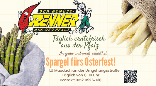 Dabei kommt der Spargel vom benachbarten Mutterstadter Landwirt Hartmut Magin täglich frisch auf den Tisch.
