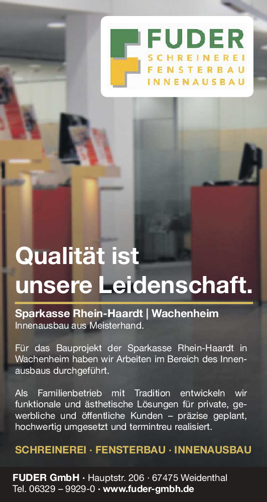 Mit der Neueröffnung der Filiale in Wachenheim stärkt die Sparkasse Rhein Haardt ihre lokale Präsenz. „Am neuen Standort in der Weinstraße 90 a in Wachenheim sind nicht nur Kundinnen und Kunden sowie Bürgerinnen und Bürger aus Wachenheim und den umliegenden Gemeinden herzlich willkommen, sondern alle, die sich dort persönlich beraten lassen, den persönlichen Service oder jenen an unseren Automaten nutzen möchten“, heißt es in einer Mitteilung der Sparkasse. Helle, modern gestaltete Räume sowie ein offener Servicebereich schaffen eine angenehme Atmosphäre für persönliche Gespräche. Im Mittelpunkt stehen dabei die individuelle Beratung, hohe Servicequalität sowie Diskretion, damit sich Kundinnen und Kunden während ihrer Beratung gut aufgehoben fühlen. „Unsere Stärke liegt in der persönlichen und individuellen Beratung vor Ort – mit Zeit, Aufmerksamkeit und ehrlichem Interesse an den Menschen in der Region. Als verlässlicher Partner stehen wir unseren Kundinnen und Kunden in allen finanziellen Fragen verantwortungsvoll zur Seite“, so der Vorstandsvorsitzende Andreas Ott. Das bekannte Team in Wachenheim berät umfassend zu allen Finanzthemen – von Geldanlage und Finanzierung über Absicherung und Altersvorsorge bis hin zu Leistungen rund um das Girokonto. Ergänzt wird das persönliche Beratungsangebot durch einen modernen Servicepoint, ein Ein- und Auszahlungsgerät, ein Selbstbedienungsterminal sowie einen Kontoauszugsdrucker. Künftig verbesserte Parkmöglichkeiten sorgen zusätzlich für einen komfortablen Besuch der Filiale. Beratungstermine sind nach Vereinbarung auch neben den bekannten Öffnungszeiten möglich.