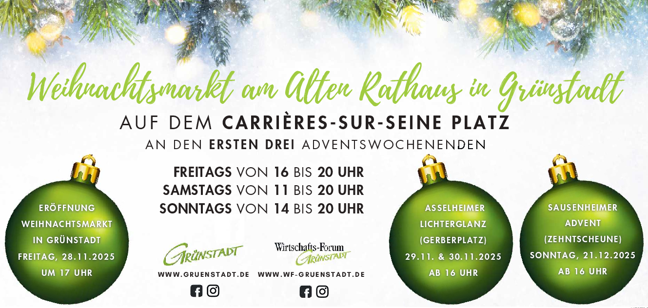 Darüber hinaus wurden sieben Weihnachtsinseln errichtet. „Sechs von ihnen werden von den Kindern aus den Kitas und Grundschulen geschmückt“, erläutert die Geschäftsführerin des Wirtschaftsforums Grünstadt, Hannah Schumacher. Die siebte Insel, die sich vor dem alten Eingang zur Stadtbücherei befindet, wird mit Basteleien aus der Bibliothek dekoriert.