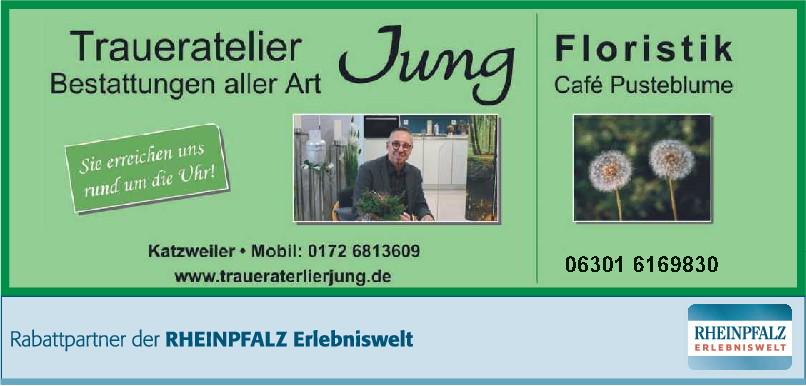 Das neue Gesetz beinhaltet Themen wie Flussbestattung, Asche auf privatem Grundstück ausbringen, Urne nach Hause nehmen und weitere neue Möglichkeiten. Zu allen Neuerungen, Bestattungsarten und bei Fragen zur Totenverfügungserklärung berät Erwin Jung bei einem persönlichen Termin ausführlich und kompetent. „Bei uns gibt es alles unter einem Dach“, erklärtJung. „Beerdigungsinstitut, Floristik und Café. Somit sind alle Bereiche abgedeckt.“ Im angrenzenden Trauercafé sollen im nächsten Jahr auch mehrere Veranstaltungen stattfinden, wie etwa Brunch mit Musik, kulinarische Weinproben oder auch Weihnachts- und Oster-Events. Termine werden bald bekannt gegeben. Außerdem können die Räumlichkeiten des Cafés auch für private Feiern gemietet werden. mile