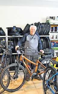 Bei Fahrrad Kaufmann finden Fahrradenthusiasten alles an Zubehör, vom Anhänger für Kind und Hund, neue Leuchten, Ketten, Reifen und wer besonderes sucht, findet eventuell auch die lange vermisste Schraube oder die ein oder andere Ersatzteil-Rarität in einer der Schubladen in Eugen Bernhardts Schubfachersatzteilschrank. Eventuell sogar Kleinteile wie Luftpumpenersatzteile. Im Angebot stehen Räder für alle Belange. Neben dem Sportrad, dem Geländerad oder Lastenfahrrad stehen auch E-Bikes und sogar ganz exotische Bambusräder. „Auch die Bambusräder gibt es als E-Bikes“, sagt Eugen Bernhardt. Nachhaltigkeit in Reinform.