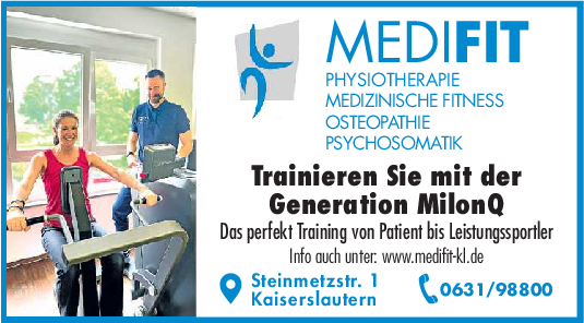 Christine Westerhorstmann und Katharina Fredrickson führen gemeinsam das Medifit in Kaiserslautern – eine Praxis, in der Therapie und Training perfekt ineinandergreifen. Ihr Ziel: Menschen jeden Alters dabei zu unterstützen, sich besser zu bewegen, gesünder zu leben und sich rundum wohlzufühlen. Was Medifit besonders macht? Ein starkes Team aus Physiotherapeuten, Sportwissenschaftlern und Osteopathen arbeitet Hand in Hand, um individuelle Lösungen zu entwickeln. Hier gibt es keine Standardprogramme – jede Behandlung und jedes Training wird gezielt auf die persönlichen Bedürfnisse abgestimmt.